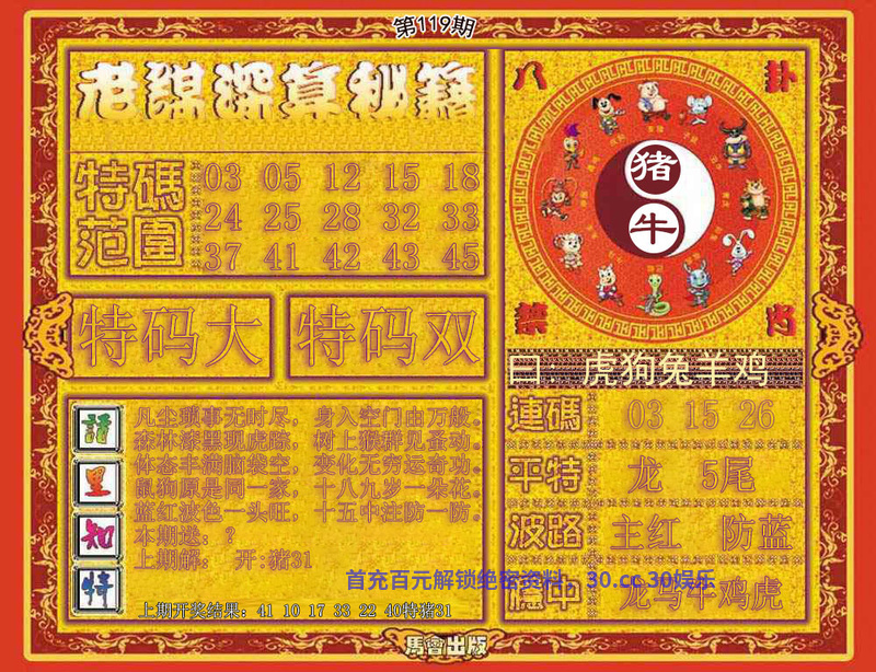 | 120期:平特一尾--《8888尾》--开:龙38准 |